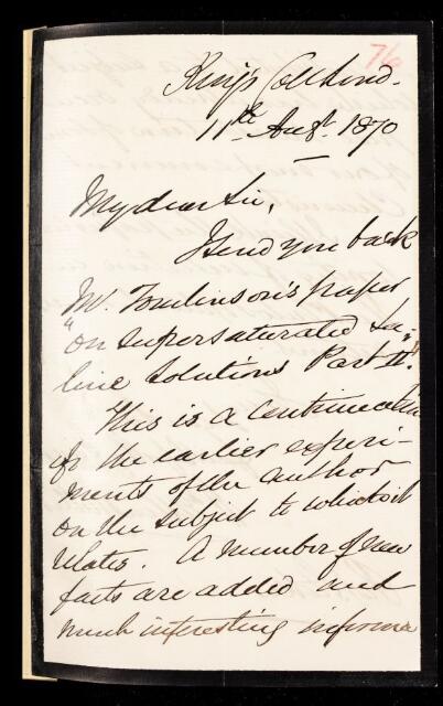 William Allen Miller, Referee's report by William Allen Miller, on a paper 'On supersaturated saline solutions - Part II' by Charles Tomlinson, 11 August 1870, RR/7/76, The Royal Society Archives, London, https://makingscience.royalsociety.org/items/rr_7_76/referees-report-by-william-allen-miller-on-a-paper-on-supersaturated-saline-solutions-part-ii-by-charles-tomlinson, accessed on 08 December 2025