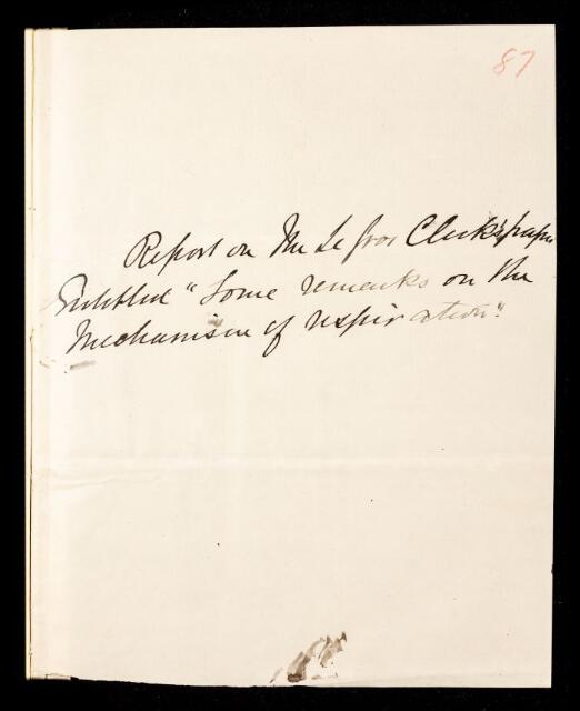 Referee's report by John Marshall, on a paper 'Some remarks on the mechanism of respiration' by Frederick Le Gros Clark