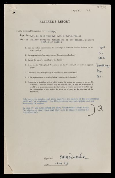 https://makingscience.royalsociety.org/items/rr_80_16/referees-report-by-john-zachary-young-on-a-paper-on-the-thalamo-cortical-connexions-of-the-general-sensory-cortex-of-macaca-by-wilfrid-edward-le-gros-clark-and-thomas-philip-stroud-powell