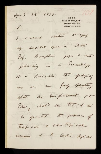 Charles Robert Darwin, Referee's report by Charles Darwin, on a paper 'Notes on Physical Geology' by Samuel Haughton, 28 April 1878, RR/8/107, The Royal Society Archives, London, https://makingscience.royalsociety.org/items/rr_8_107/referees-report-by-charles-darwin-on-a-paper-notes-on-physical-geology-by-samuel-haughton, accessed on 07 February 2026