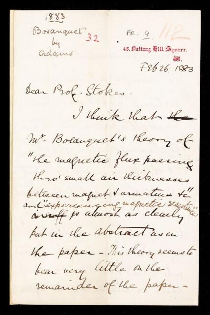 William Grylls Adams, Referee's report by William Grylls Adams, on a paper 'Preliminary paper on a uniform rotation machine; and on the theory of electromagnetic tuning forks' by Robert Holford Macdowall Bosanquet, 26 February 1883, RR/9/112, The Royal Society Archives, London, https://makingscience.royalsociety.org/items/rr_9_112/referees-report-by-william-grylls-adams-on-a-paper-preliminary-paper-on-a-uniform-rotation-machine-and-on-the-theory-of-electromagnetic-tuning-forks-by-robert-holford-macdowall-bosanquet, accessed on 15 April 2026