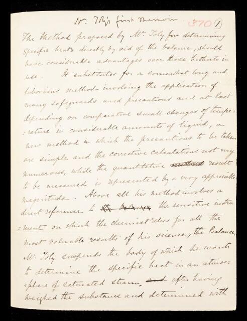 Mervyn Herbert Nevil Story-Maskelyne, Referee's report by Mervyn Herbert Nevil Story-Maskelyne, on a paper 'On the specific heats of minerals' by John Joly, 1886, RR/9/370, The Royal Society Archives, London, https://makingscience.royalsociety.org/items/rr_9_370/referees-report-by-mervyn-herbert-nevil-story-maskelyne-on-a-paper-on-the-specific-heats-of-minerals-by-john-joly, accessed on 15 March 2026
