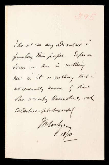 Joseph Norman Lockyer, Referee's report by Joseph Norman Lockyer, on an unnamed paper by Roberts, 18 October 1886, RR/9/395, The Royal Society Archives, London, https://makingscience.royalsociety.org/items/rr_9_395/referees-report-by-joseph-norman-lockyer-on-an-unnamed-paper-by-roberts, accessed on 17 February 2026