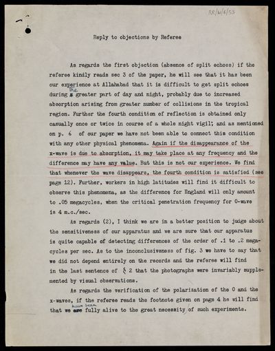 Creator: Edward Victor Appleton Reference number: RR/W/6/48 -