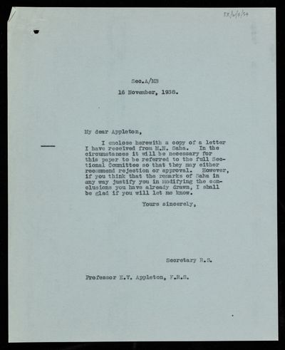 Creator: Edward Victor Appleton Reference number: RR/W/6/56 -