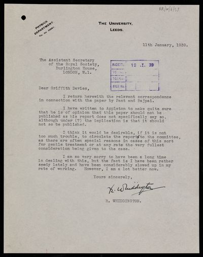 Creator: Edward Victor Appleton Reference number: RR/W/6/57 -