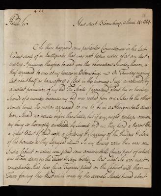 Letter, 'Of the earthquake of March 8' from Michael Russell to Martin Folkes