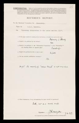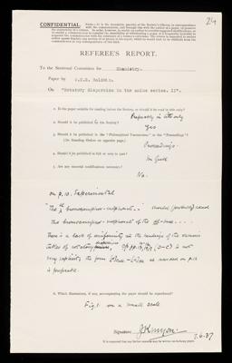 Referee's report by Joseph Kenyon, on a paper 'Rotatory dispersion in the amine series II-l-secondary butylamine and its derivatives' by W C G Baldwin