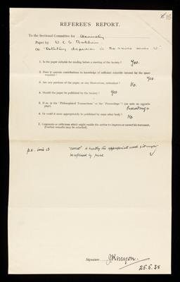 Referee's report by Joseph Kenyon, on a paper 'Rotatory dispersion in the amine series III-The absorption spectra of diamines' by W C G Baldwin