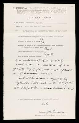 Referee's report by James Hopwood Jeans, on a paper 'The effect of the fitzgerald-lorentz contraction on the frequency of longitudinal vibration of a rod' by A B Wood, G A Tomlinson and Louis Essen