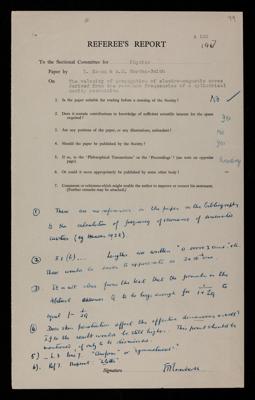 Referee's report by Arthur Mannering Tyndall, on a paper 'The dye quartz ring oscillator as a standard of frequency and time' by Louis Essen