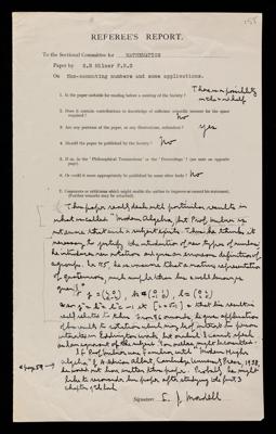 Referee's report by Louis Joel Mordell, on a paper 'On non-commuting numbers and some applications' by Samuel Roslington Milner