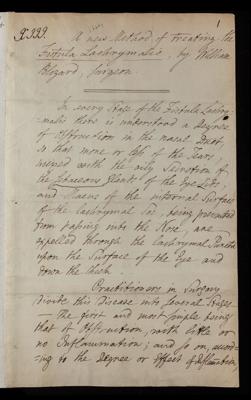 Paper, 'A new method of treating the Fistula lacrymalis' by William Blizard