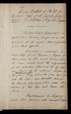 Paper, 'A new method of relief in the first stage of Fistula lacrymalis' by William Blizard