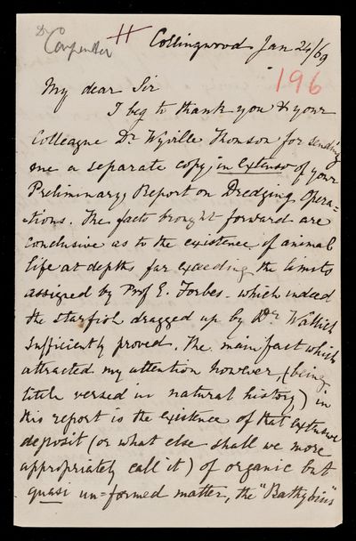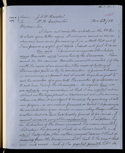 Draft letter, from Sir John Herschel to William Benjamin Carpenter
