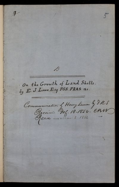 Paper, 'On the growth of land shells [snails]' by E J [Edward Joseph] Lowe