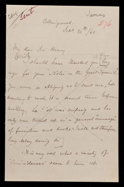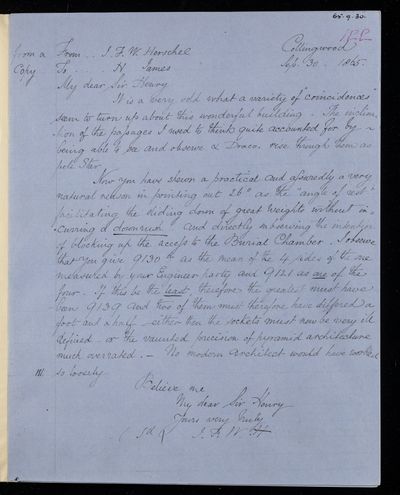 Copy letter, from Sir John Herschel to Henry James, dated at Collingwood