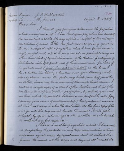 Copy letter, from Sir John Herschel to Henry James