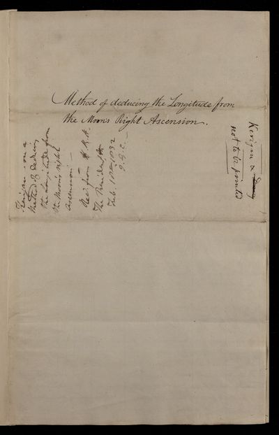 Unpublished paper, 'A method of deducing the longitude from the moon's right ascension' by Thos [Thomas] Kerigan