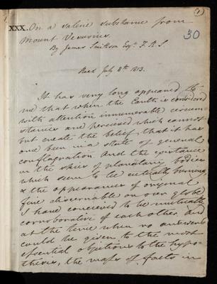 Paper, 'On a saline substance from Mount Vesuvius' by James Smithson