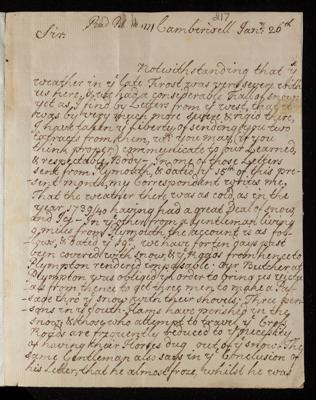 Letter, 'Of the weather at Plymouth' from John Corham Huxham to Charles Morton