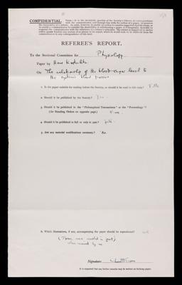 Referee's report by Charles Arthur Lovatt Evans, on a paper 'The relationship of the blood sugar level to the systemic blood pressure' by Hans Walter Kosterlitz