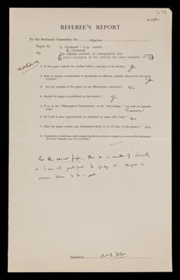 Referee's report by Robert John Stutt, Lord Rayleigh on a paper 'Spectroscopic identification and manometric measurement of artificially produced helium' by Friedrich Adolf Paneth, E Glückauf and H Loleit
