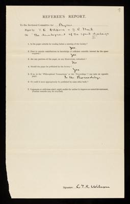 Referee's report by Charles Thomson Rees Wilson, on a paper 'The development of the spark discharge II' by Thomas Edward Allibone and J M Meek