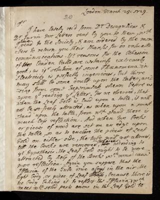 Letter, from William Rutty to M[arten] Triewald, dated at London