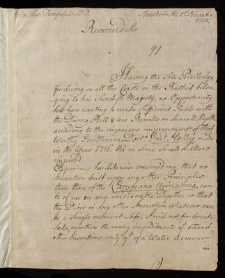 Paper, 'Description of a new invention of bellows call'd water bellows' by Martin Triewald