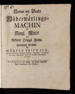Creator: Martin Triewald, Marten Triewald Reference number: EL/T/91 -