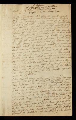 Paper, 'A relation of a bone voided out of the bladder of Sir Wm [William] Throckmorton' by Thomas Coxe