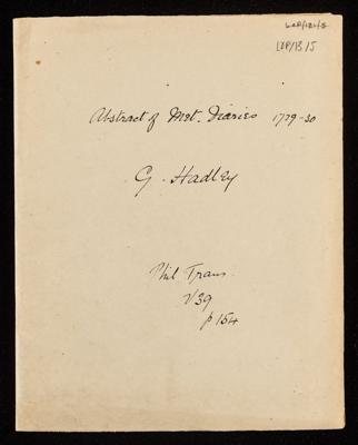 Paper, 'Concerning the causes of the general trade winds' by George Hadley
