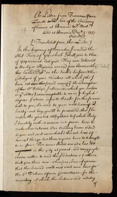 Translation of a letter, from Francis Maria Zanotti to Cromwell Mortimer, dated at Bologna