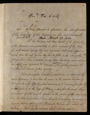 Paper, 'Attempt to ascertain the knowledge of the ancients about the East Indies' by John Caverhill