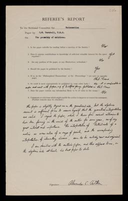 Referee's report by Alexander Craig Aitken, on a paper 'The geometry of matrices' by Herbert Westren Turnbull