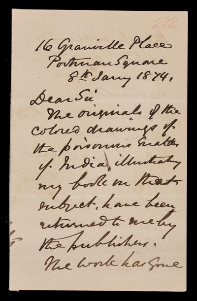 Letter, from Joseph Fayrer to [Walter White], the Assistant Secretary of the Royal Society