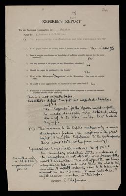 Referee's report by Sydney Chapman, on a paper 'Atmospheric oscillations and the resonance theory' by K Weekes and Maurice Vincent Wilkes