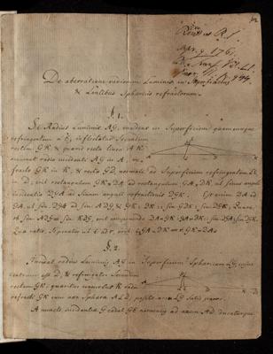 Paper, 'Of the aberration of light reflected at spherical superficies and lenses' by Sanuel Klingenstierna