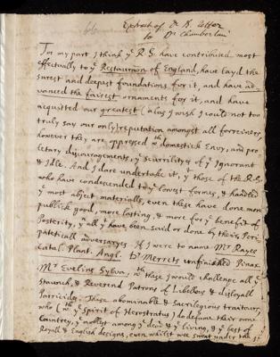 Letter, from Henry Oldenburg to Dr [Edward] Chamberlayne, dated at London