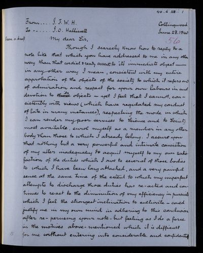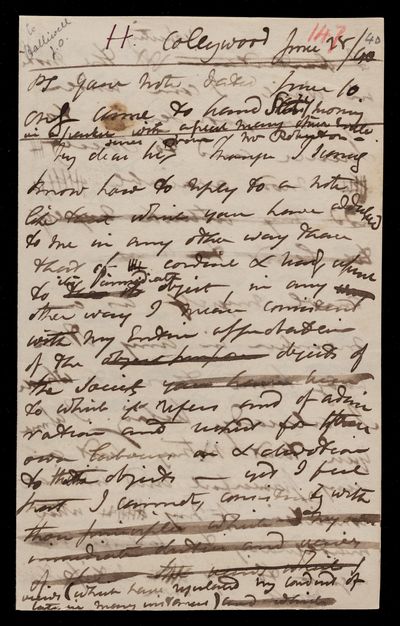 Draft letter, from Sir John Herschel to James O. Halliwell, dated at Collingwood