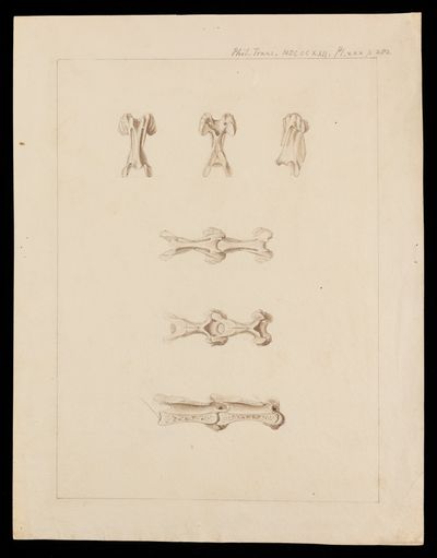 Drawing, vertebrae of the spines of birds by unknown artist