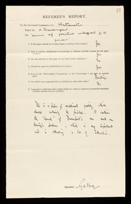 Creator: Godfrey Harold Hardy Reference number: RR/65/68 -