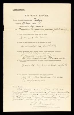 Referee's report by Edward Alfred Minchin, on a paper 'Contributions to the study of the bionomics and reproductive processes of the foraminifera' by Edward Heron-Allen