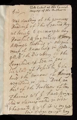 Paper, 'A letter from the Revd [Reverend] Father Felix Bernard's to the Royal Society, consider'd' by [William Jones]