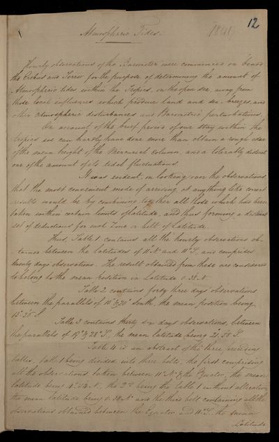 Unpublished paper, 'Atmospheric tides' by James Clark Ross