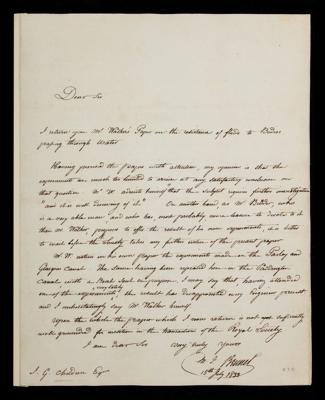 Unpublished paper and letter, 'Observations on the plan proposed by Mr Parrot of St Petersbourg [Petersburg] for mending the hole over the tunnel, securing the works against future irruption [upsurges] and in case of any irruption [upsurge], for saving the men' by Mc I [Marc Isambard] Brunel
